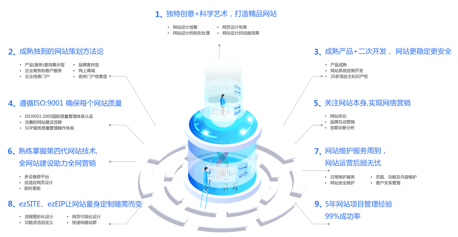 通过精美建站结合6大标准流程,全方位解决企业的营销、定位、品牌、传播等问题。实现全网营销、大幅提升企业品牌形象,降低营销成本。